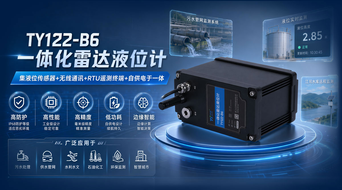 防水型遥测终端机 | TY501-B6TY501-B6防水型水利遥测终端机,IP68防护等级适用严苛室外环境,低功耗设计长待机适用,支持全网通4G无线网络,具备数据采集、无线远传、远程控制、告警等多功能。