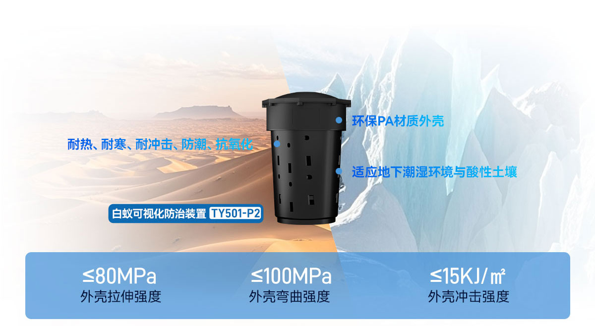 环保PA材质外壳,耐热、耐寒、耐冲击、防潮、抗氧化,适应地下潮湿环境与酸性土壤,可确保设备的长期稳定运行