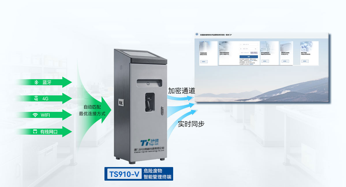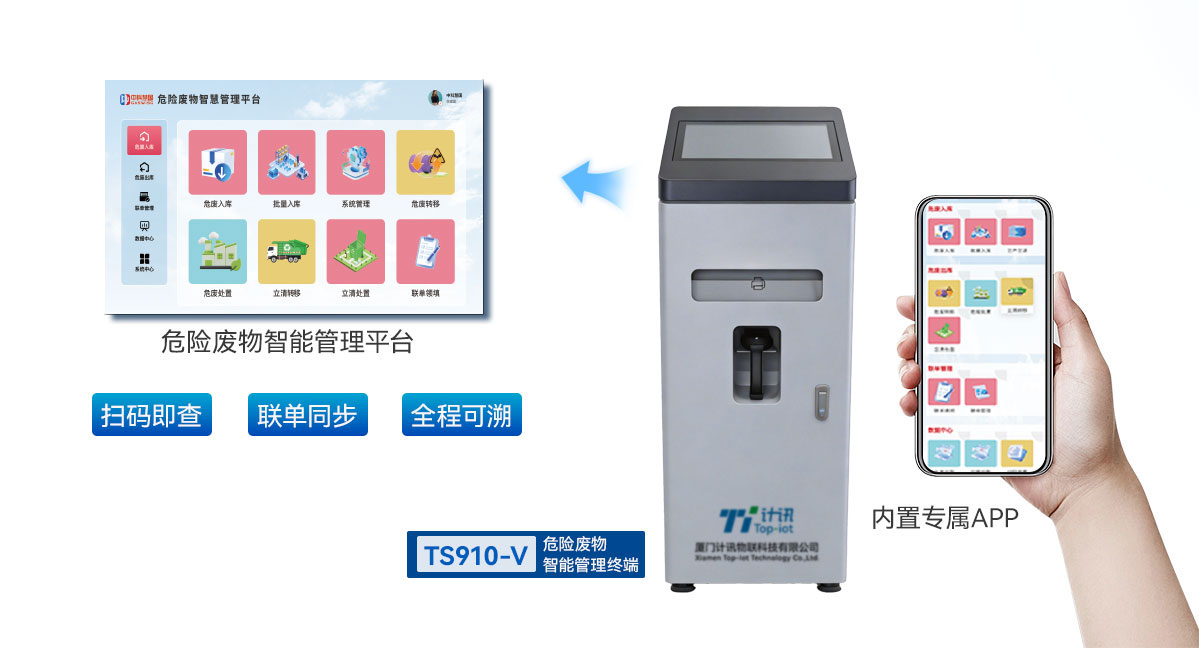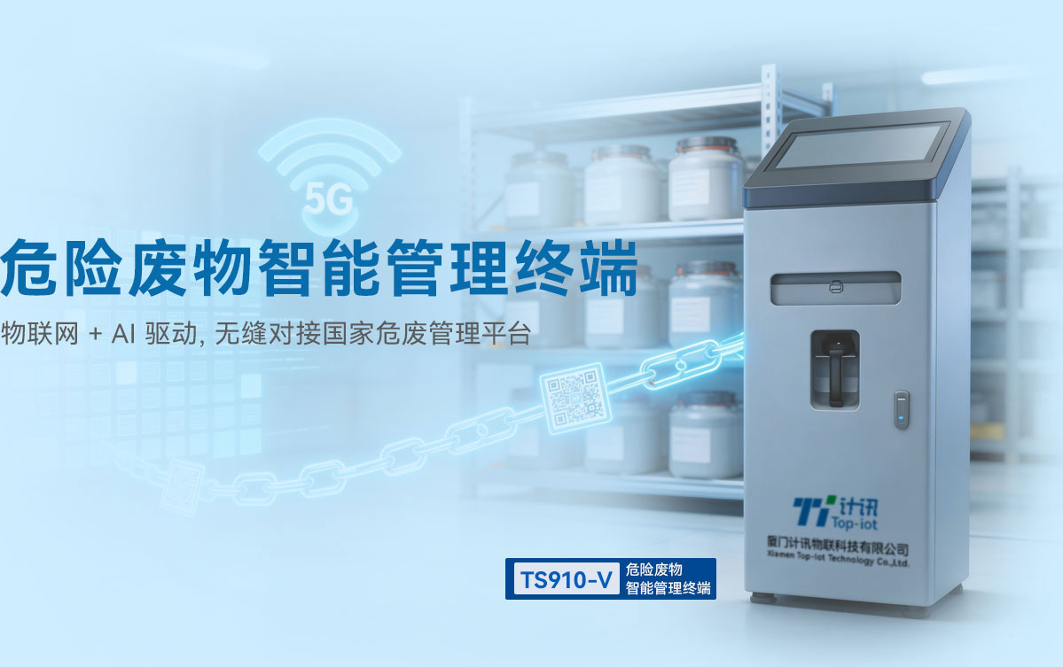 计讯物联TS910-V危险废物智能管理终端一体机,实现危废从产生到入库全流程的闭环式智能管控,实时上传自动称重、废物代码、废物类型、废物包装、标签打印、入库信息,无缝对接国家危险废物管理平台,为危废管理的合规性、准确性与高效性提供了坚实技术支撑。