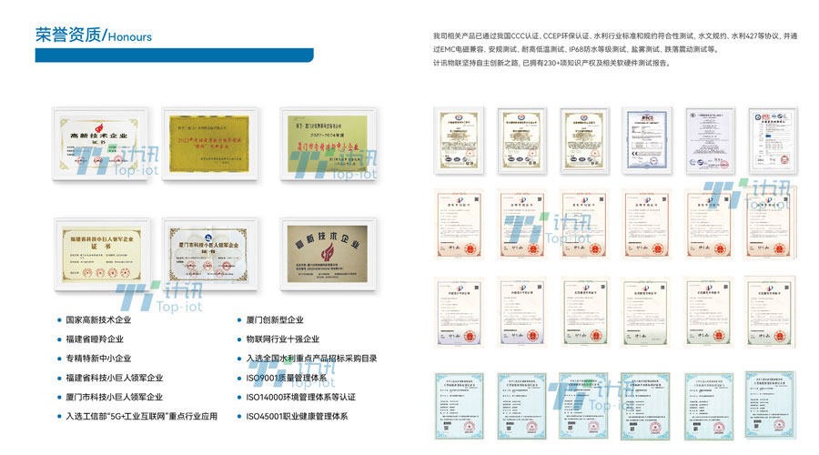 实力背书:计讯物联深耕环保领域多年,企业拥有强大技术团队,荣获国家高新技术企业、专精特新企业,取得ISO三体系、CCC、CE、环保等认证,拥有软件企业认定证书和多项平台软件著作权,参与建设了多个被行业以及地方政府认可的“智慧园区”、“绿色园区”示范项目,积累了海量的实战数据和丰富的项目交付经验。